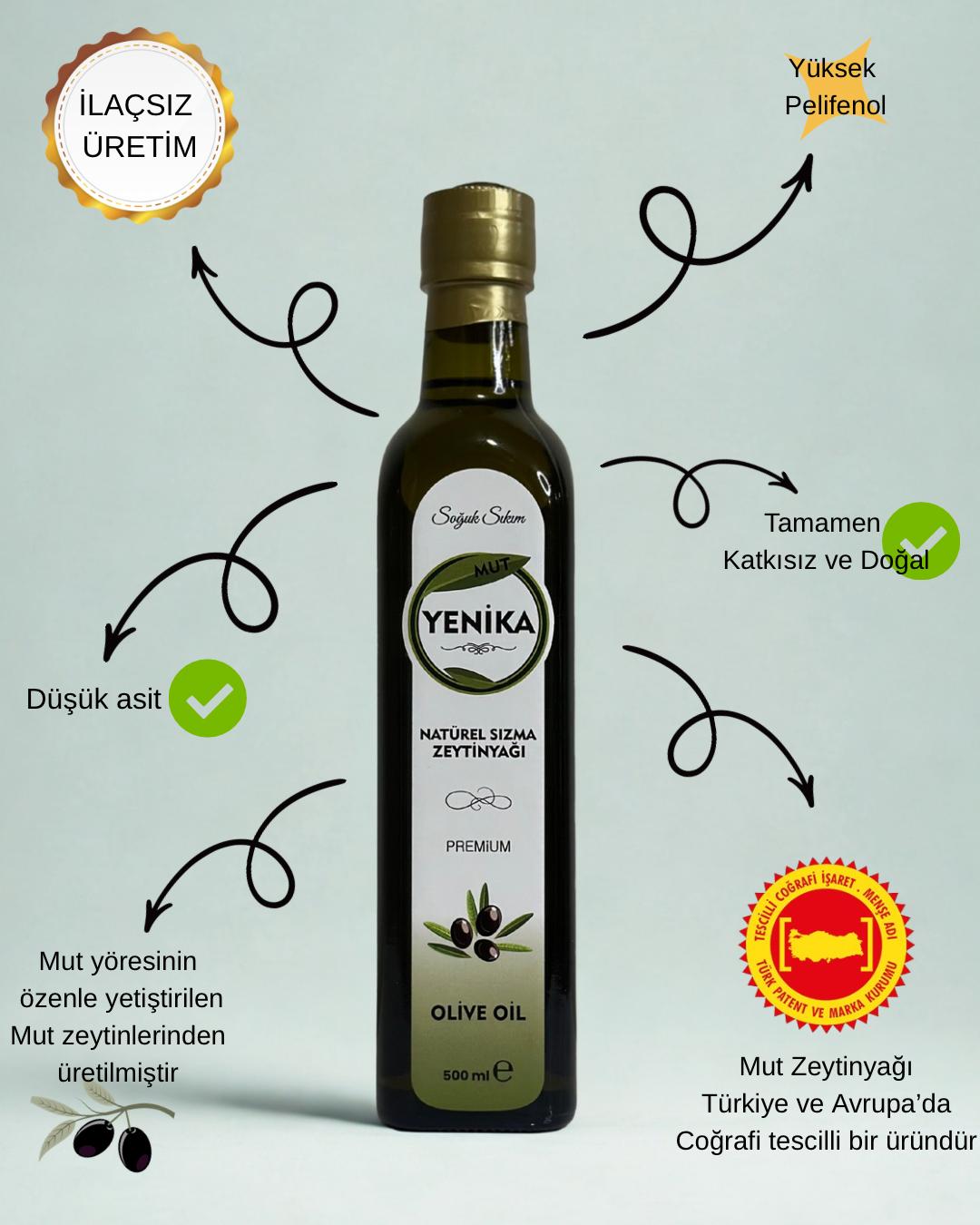 MUT YENİKA SOĞUK SIKIM NATÜREL SIZMA ZEYTİNYAĞI 500 ML CAM